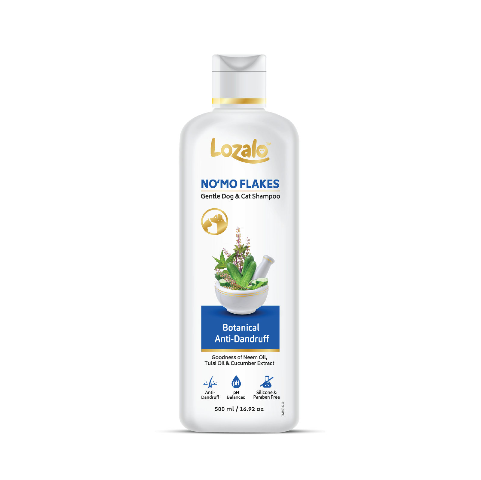 Lozalo’s No’Mo Flakes Shampoo is a mild & pH balanced cleanser specially formulated for pets to protect them against skin flaking caused by dandruff. It is harnessed with the power of botanical active ingredients. The blend of Cucumber & Aloe Vera Extract help to moisturize hair coat and skin. The rejuvenating fragrance lingers on the coat for long lasting freshness.