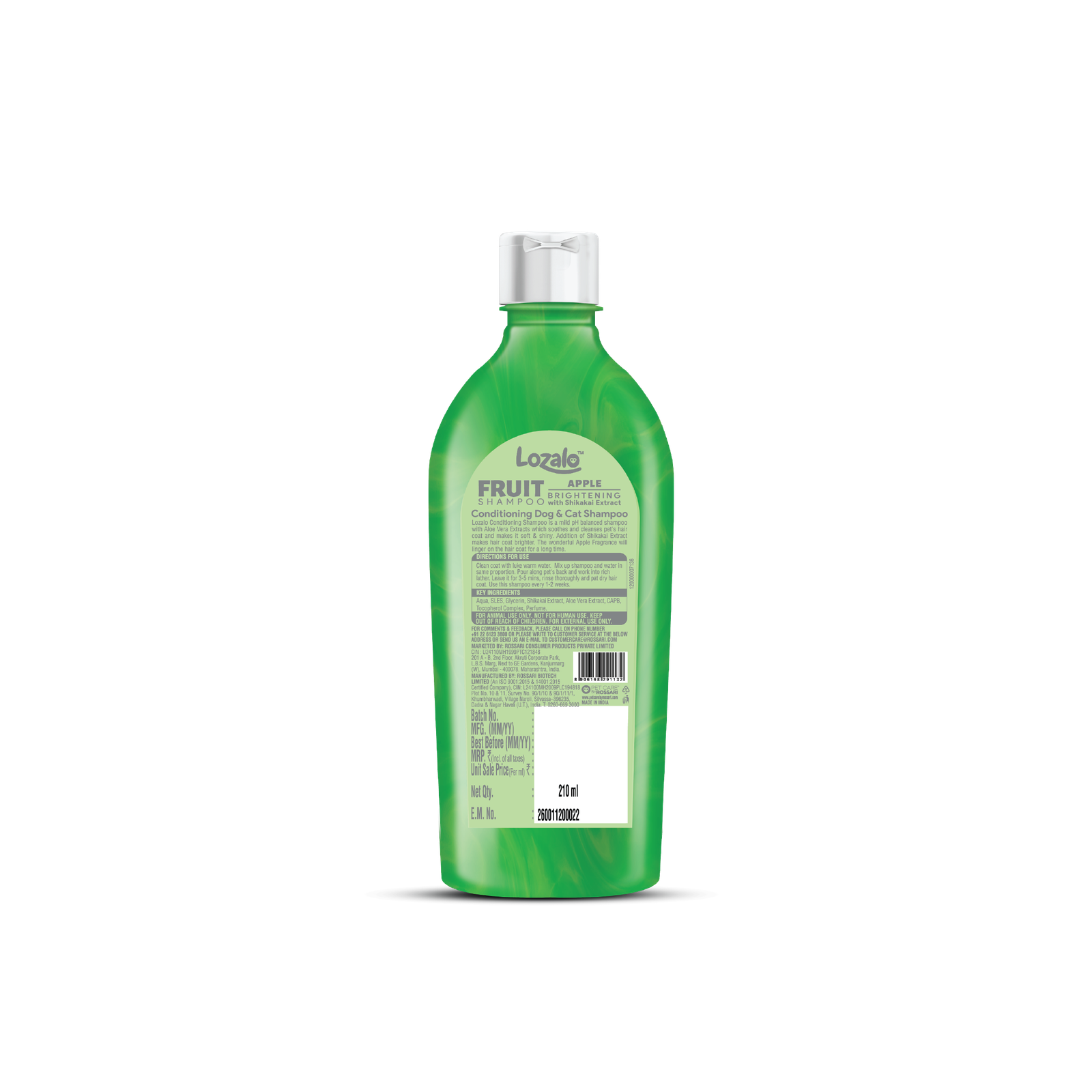 Lozalo Apple Fruit conditioning shampoo is a mild pH balanced shampoo with Aloe Vera Extract which cleanses a pet’s hair coat to make it soft & shiny. Shikakai extract makes the hair coat brighter. The wonderful apple fragrance will linger on the hair coat for a long time.