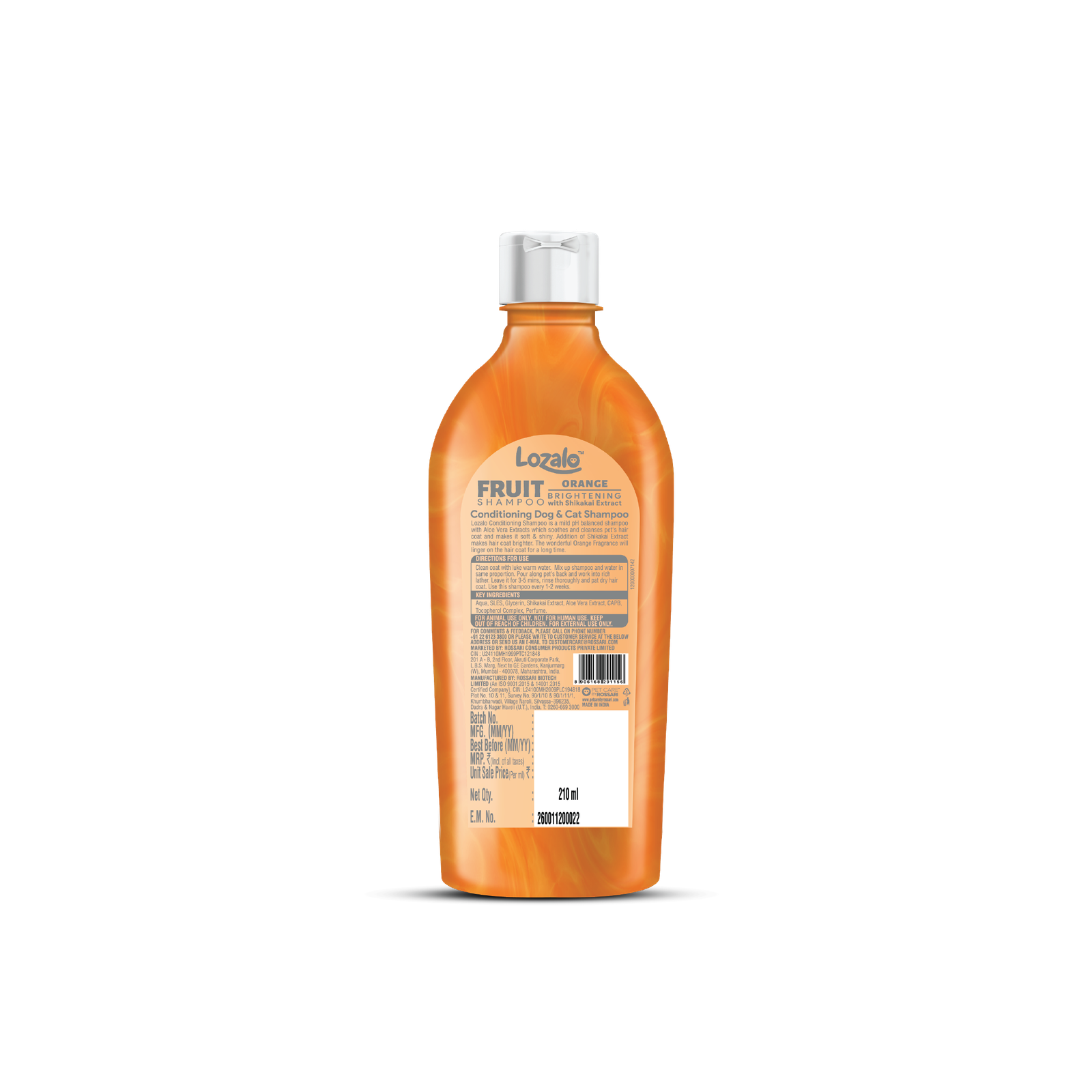 Lozalo Orange Fruit conditioning shampoo is a mild pH balanced shampoo with Aloe Vera Extract which cleanses a pet’s hair coat to make it soft & shiny. Shikakai extract makes the hair coat brighter. The wonderful orange fragrance will linger on the hair coat for a long time.