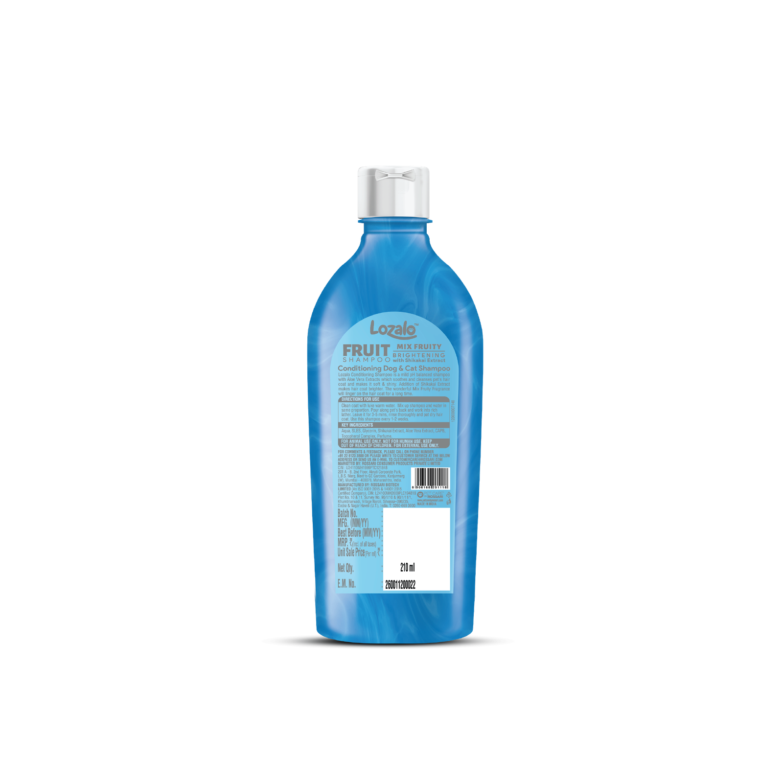 Lozalo Mix Fruity conditioning shampoo is a mild pH balanced shampoo with Aloe Vera Extract which cleanses a pet’s hair coat to make it soft & shiny. Shikakai extract makes the hair coat brighter. The wonderful mix fruity fragrance will linger on the hair coat for a long time.