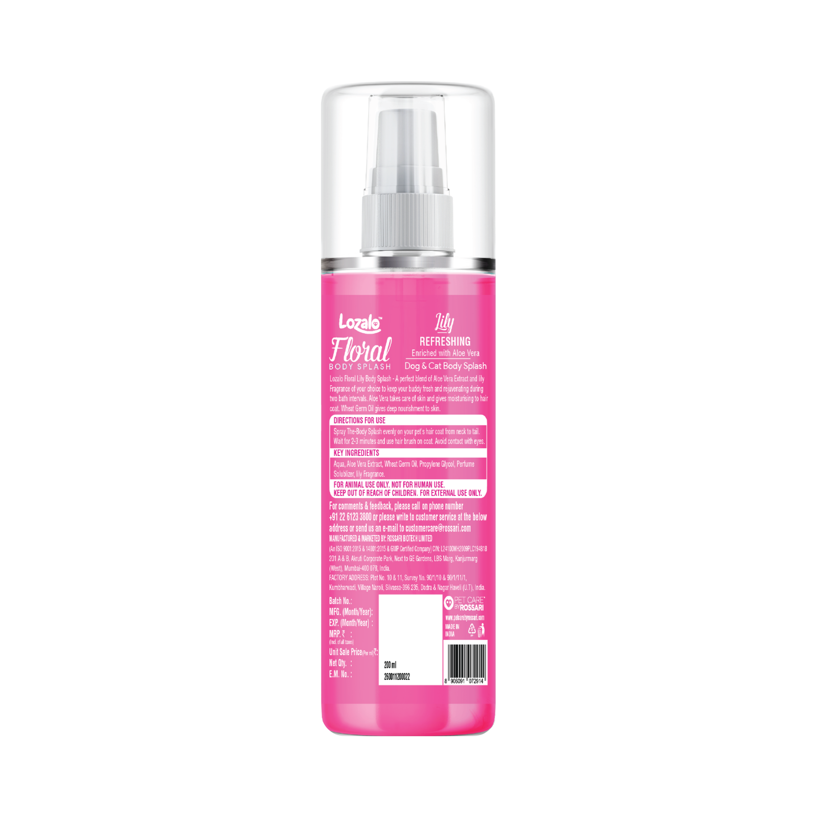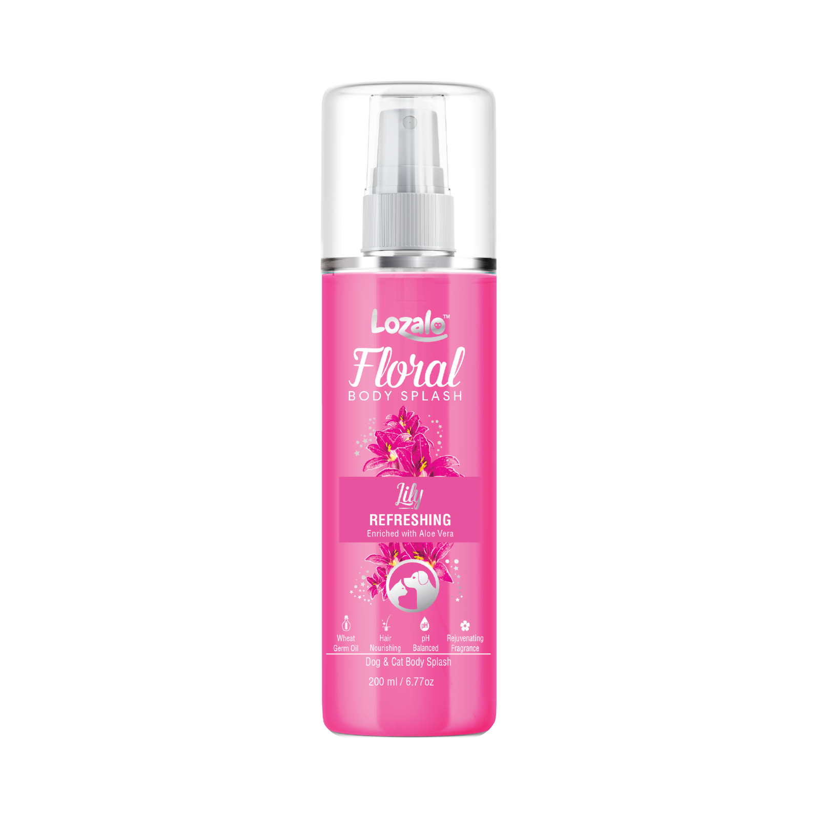 Lozalo Floral Lily Body Splash is a perfect blend of Aloe Vera Extracts and Lily fragrance of your choice to keep your buddy fresh and rejuvenated during the interval between baths. Aloe Vera takes care of skin and moisturizesthe hair coat. Reetha Extract deeply nourishes the skin, leaving behind a long-lasting Lily fragrance.