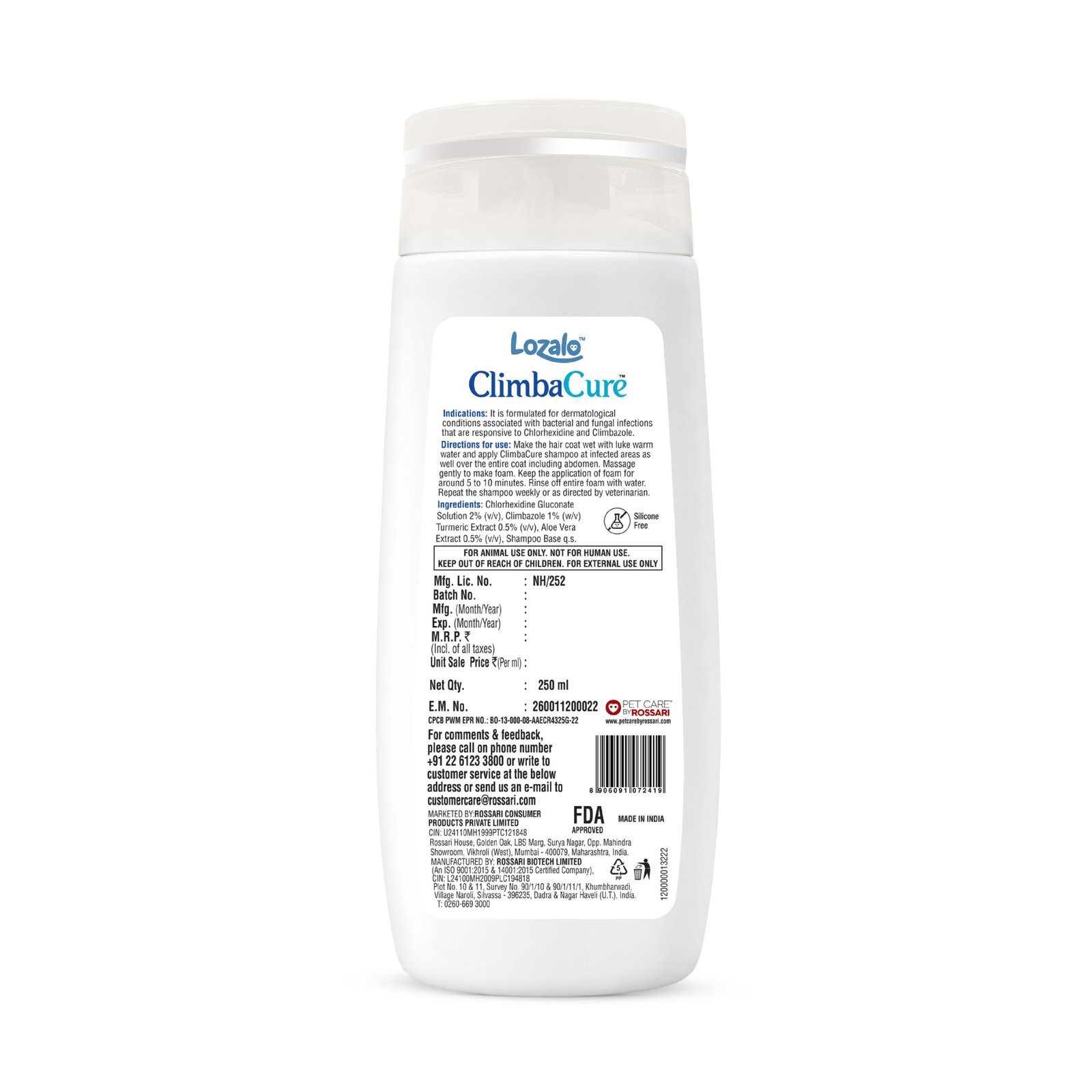 Does your dog itch and scratch so much, they cause uncomfortable skin irritation or even infection? They may be able to benefit from ClimbaCure Medicated Antibacterial & Anti-Fungal Dog Shampoo. This shampoo is specially formulated to fight both bacterial skin infection and fungal infections, getting your dog’s skin back to normal and helping to stop all that scratching. ClimbaCure medicated shampoo uses Climbazole as Its main Ingredient a medication used to help reduce itching by acting on fungal infection. At the same time, Chlorhexidine Gluconate, a dog antiseptic skin cleanser, combats bad bacteria. It is also enriched with mild naturally derived sulphate free ingredients to help your dog’s coat get back its optimal, lustrous shine and shape. The formulation is enriched with a light refreshing fragrance and the ideal pH balance.
