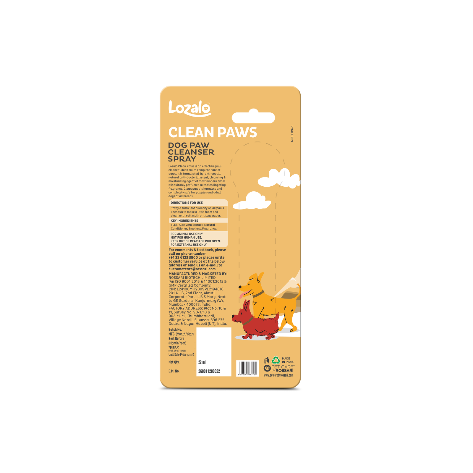 Lozalo Clean Paws is an effective paw cleaner that takes complete care of paws. It is enriched with the power of Aloe Vera which removes germs effectively and soothes the paws. It is suitably perfumed with a rich lingering fragrance.