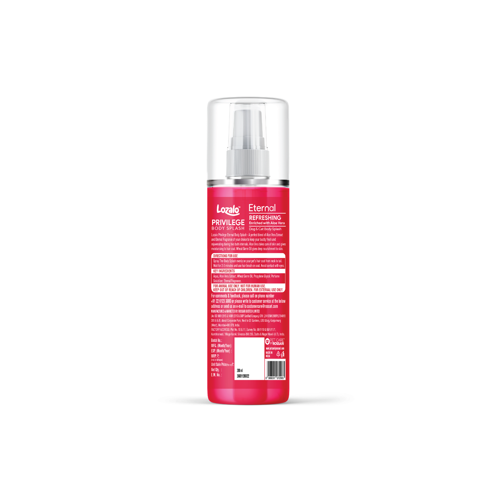 Lozalo Privilege Eternal Body Splash is a perfect bland of Aloe Vera Extract & Eternal Fragrance of your choice to keep your buddy fresh and rejuvenated during the interval between baths. Aloe Vera takes care of skin and moisturizes the hair coat. Reetha extract deeply nourishes the skin, leaving behind a long-lasting Eternal fragrance.