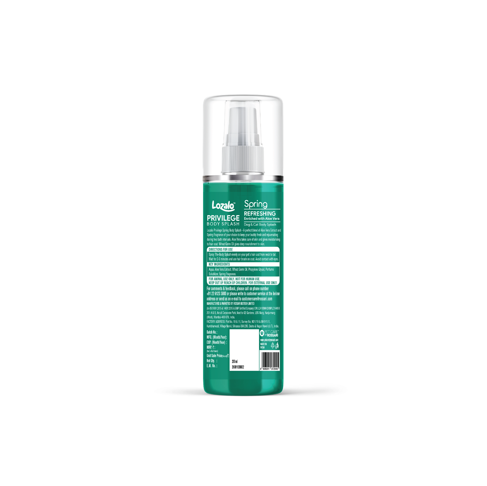 Lozalo Privilege Spring Body Splash is a perfect blend of Aloe Vera Extract & Dew Fragrance of your choice to keep your buddy fresh and rejuvenated during the interval between baths. Aloe Vera takes care of skin and moisturizes the hair coat. Reetha extract deeply nourishes the skin, leaving behind a long-lasting Spring fragrance.