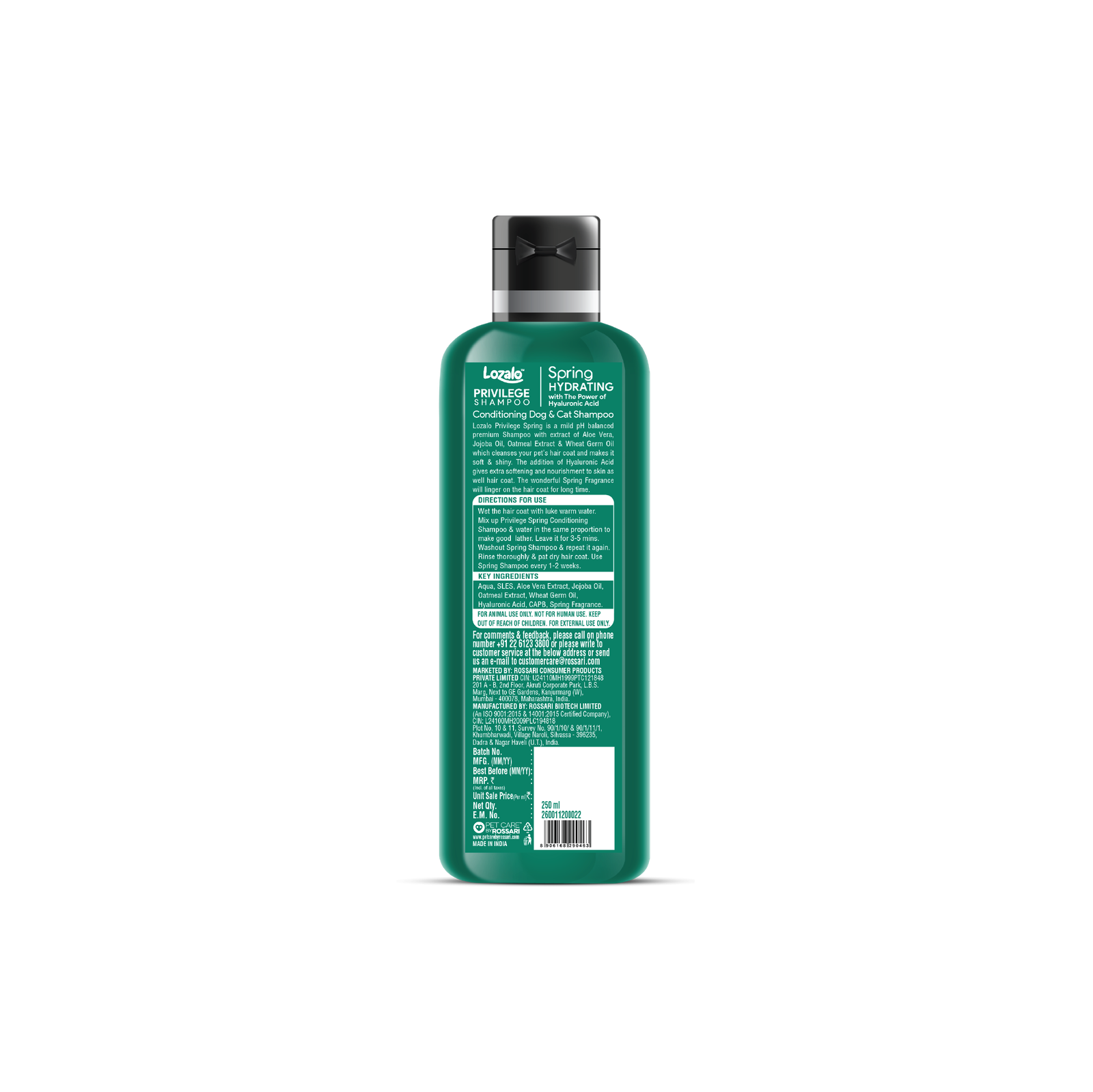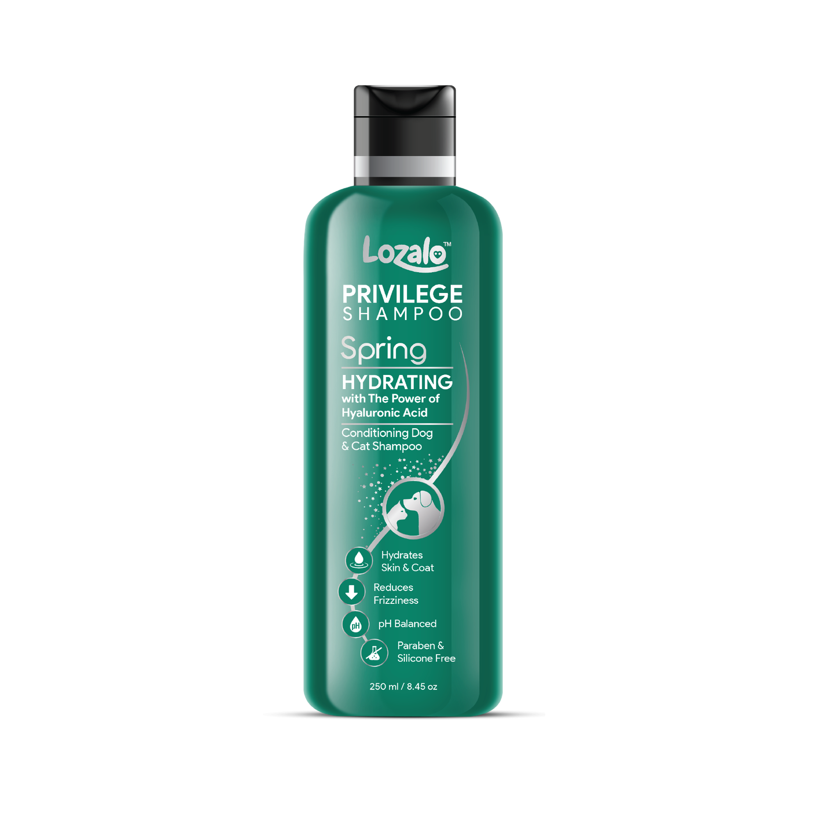 Lozalo Privilege Spring Shampoo is a mild pH-balanced shampoo with extract of Aloe Vera, Jojoba Oil, Wheat Germ Oil, and Oatmeal Extract which cleanses hair coat and makes it soft & shiny. The addition of Hyaluronic Acid gives extra softening and nourishment to the skin as well as the hair coat. The wonderful Spring fragrance will linger on the hair coat for a long time.