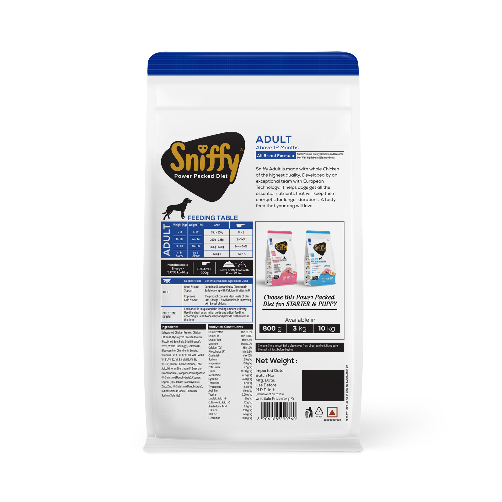 Crafted with European technology, SNIFFY Premium Adult Dry Dog Food upholds the highest standards in pet nutrition. The advanced manufacturing process ensures the quality and safety of the product, giving you confidence in the food you provide for your beloved pet.