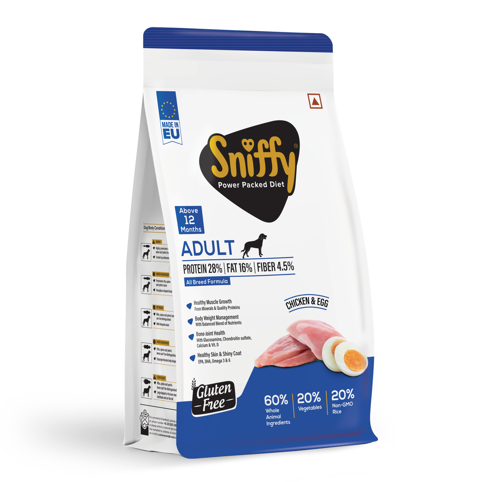 SNIFFY Premium Adult Dry Dog Food is crafted with the goodness of real chicken and egg, providing your furry friend with a high-quality protein source for optimal muscle development and overall health.
