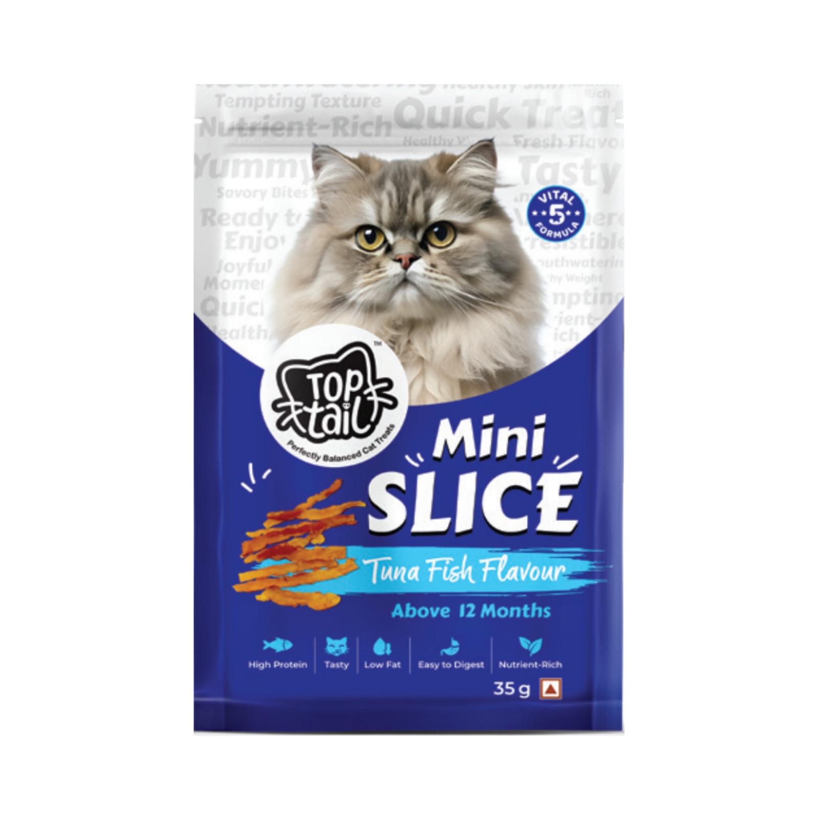 Toptail Mini Jerky Slice Tuna Flavor is a high-protein formula that supports muscle growth and overall vitality. The delicious blend of chicken and fish delivers an irresistible taste that cats love, while lean protein helps maintain a healthy weight. Easy to digest and nutrient-rich, it provides essential amino acids for healthy skin, a shiny coat, and a strong immune system. Make every snack time a joyful moment for your furry friend!