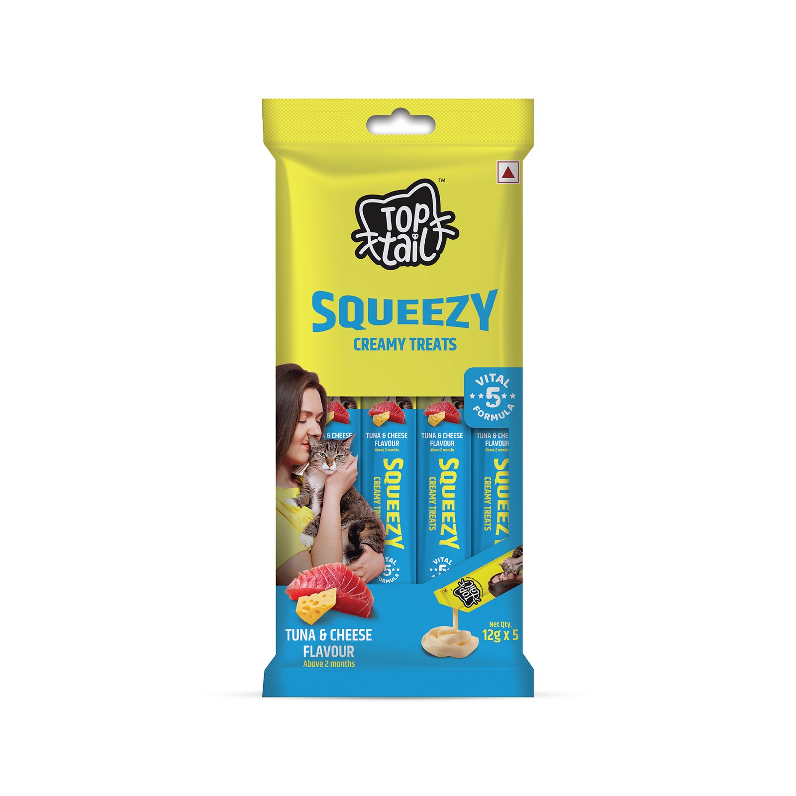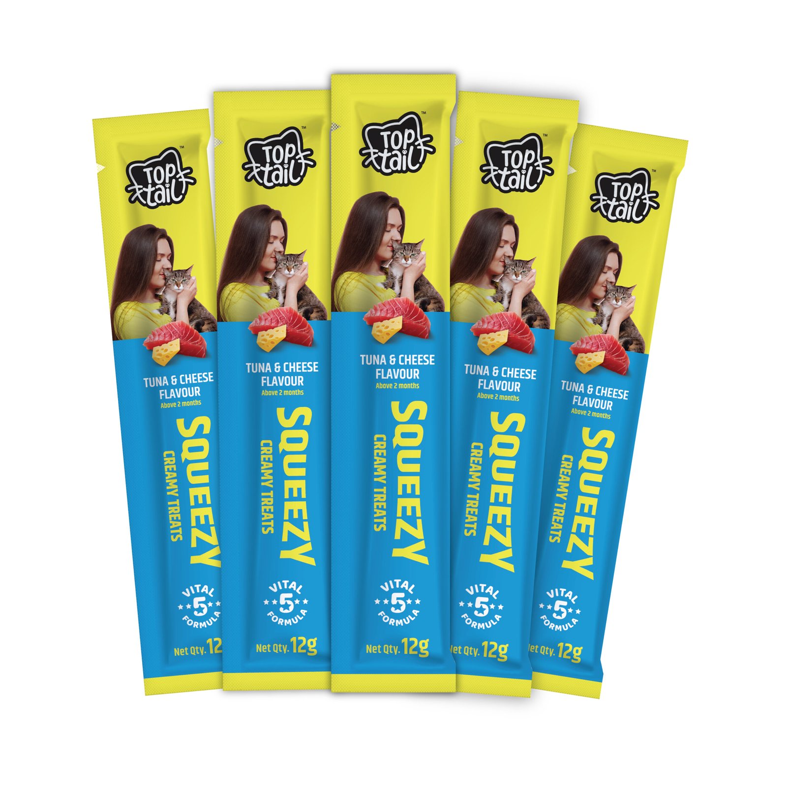 Toptail Creamy Treats- Tuna & Cheese Flavour offers Squeezy Lickable Treats for Cats and are rich in Omega-3 & 6 Fatty Acids. The individual sachets ensure freshness and make portion control simple.