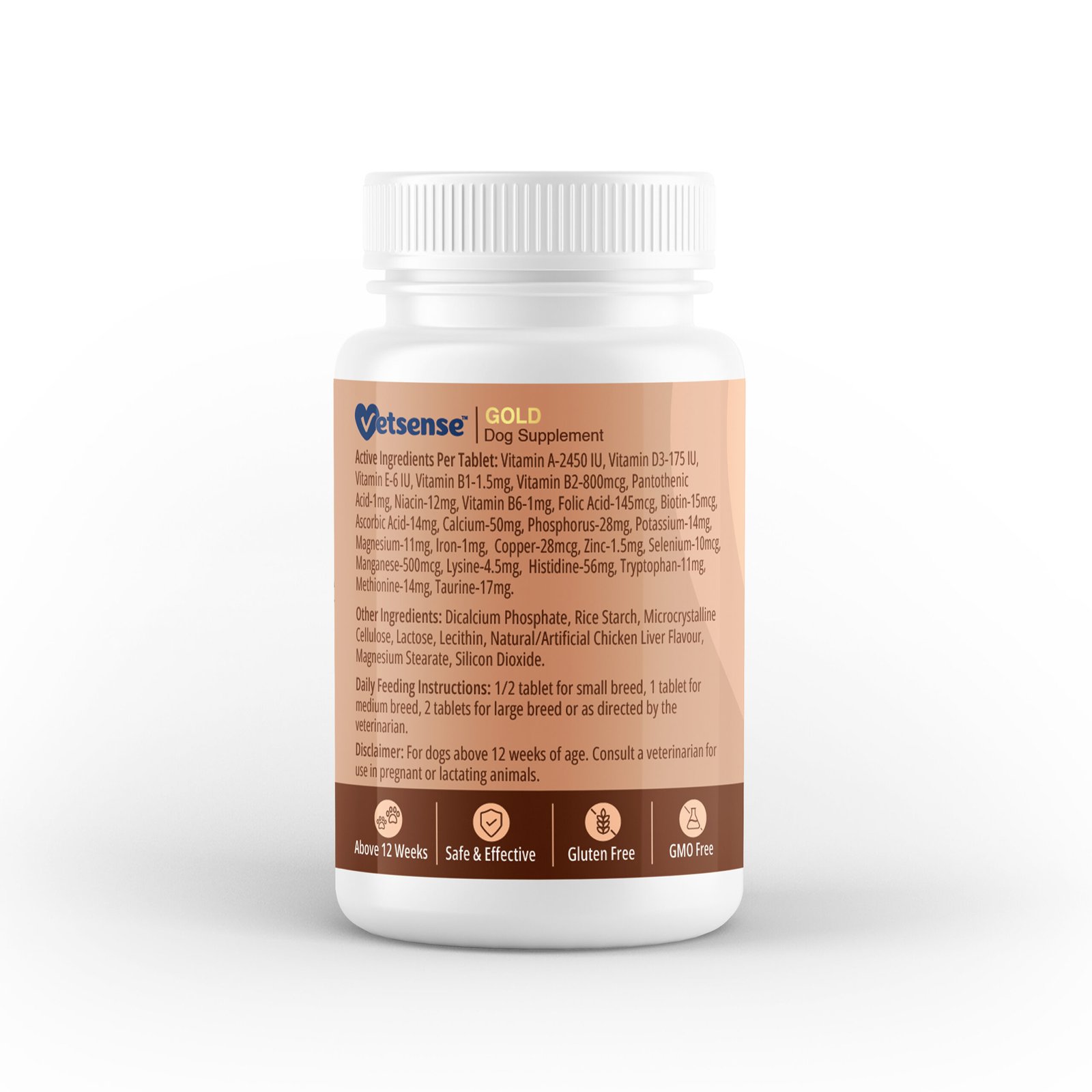 Dicalcium Phosphate, Rice Starch, Microcrystalline Cellulose, Lactose, Lecithin, Natural/Artificial Chicken Liver Flavour, Magnesium Stearate, Silicon Dioxide.