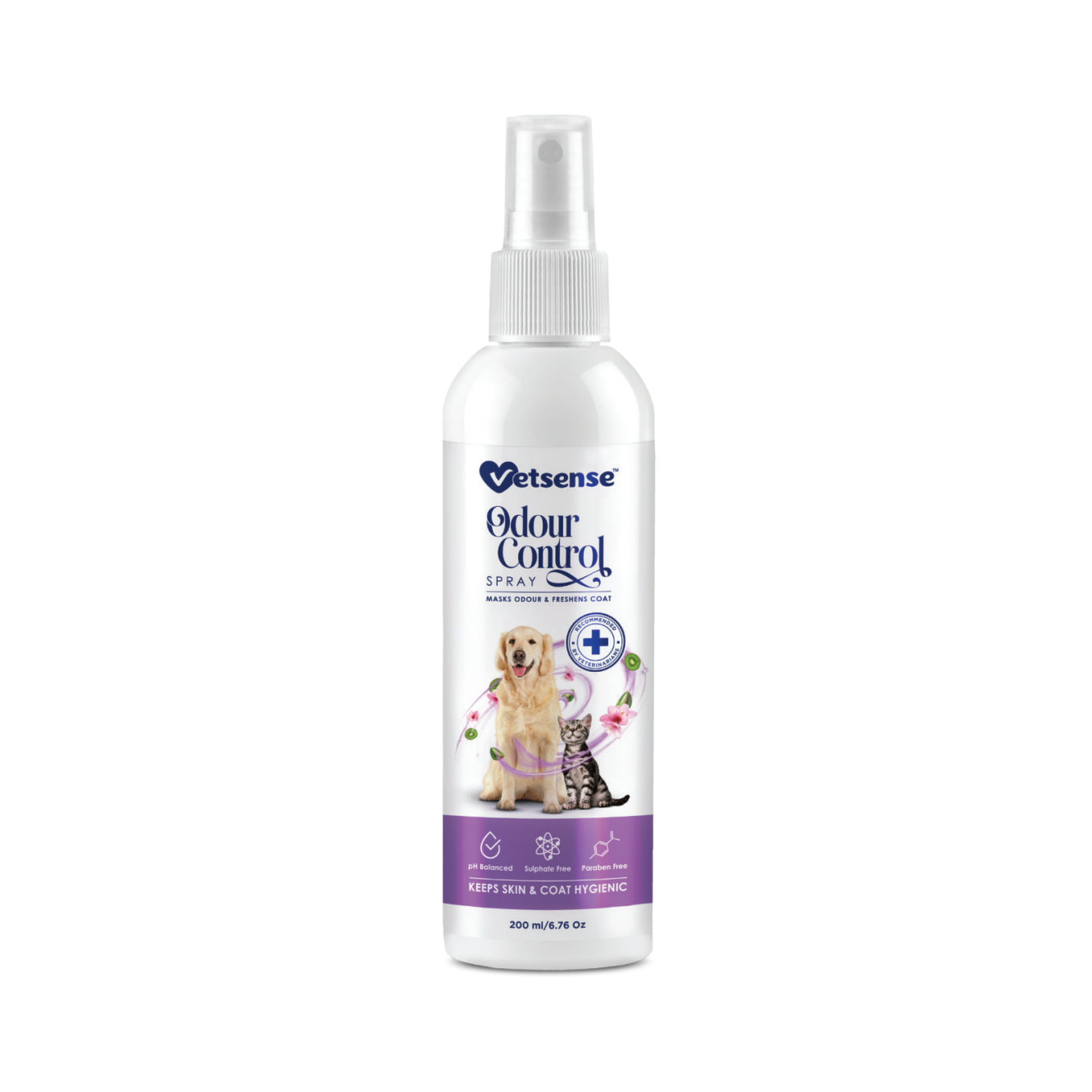 Vetsense Odour Control Spray is a therapeutic odour-neutralizing solution formulated to target the root cause of unpleasant smells by combating odour-causing bacteria. Its therapeutic blend, enriched with Baking Soda particles, helps absorb excess moisture, balance skin pH, and neutralize acidic bacteria responsible for odour, ensuring long-lasting freshness. Infused with Kiwi Extract, Aloe Vera, and Grapefruit Seed Extract, it not only refreshes and hydrates the skin and coat but also provides soothing care, leaving your pet’s coat soft, healthy, and delicately scented with Kiwi Blossom.