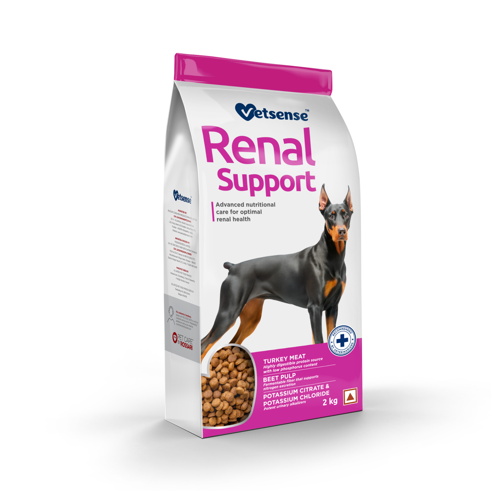 Vetsense Renal Support is scientifically formulated to deliver comprehensive nutritional care for dogs with renal disorders. Enriched with potent urinary alkalizers, it helps manage metabolic acidosis linked to nephropathies, while its moderate protein and balanced fat helps to mitigate both acute and chronic renal impairment.